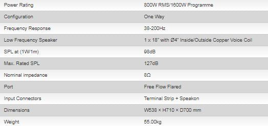 SWX-810 is a high power professional passive subwoofer system driven by one efficient 18”LF driver. Housed in an specially designed bass reflex enclosure to provide superior bass response with higher power handling capacity. Strong and durable wooden enclosure is well braced internally and attractively paint finished externally. Protective grille has robust design to provide required protection to the speaker and professional appearance to the product. The enclosure is fitted with four heavy duty handles, a recessed terminal plate and four indexed feet for ease of stacking. Speakon connector and Terminal Strip are provided for quick and convenient connections.