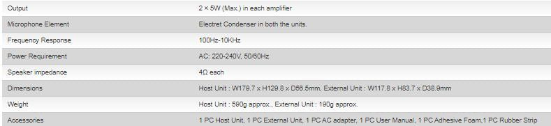 - Audio output for recording available through 3.5mm phone jack on the Host Unit. This is a stereo output having signals from both the Host Unit mic and the External Unit mic.