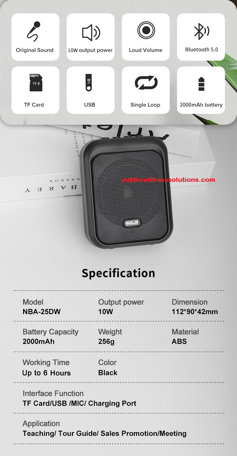 Ahuja NBA 25DW with Bluetooth, USB and SD card option Wireless speaker. Best for Teachers, Doctors & Public address of a small gathering