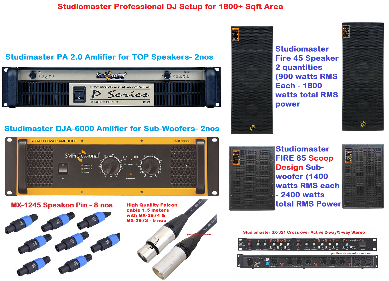 - High Quality Professional DJ Setup for 1800+ Sqft with Studiomaster brands. Package includes below items