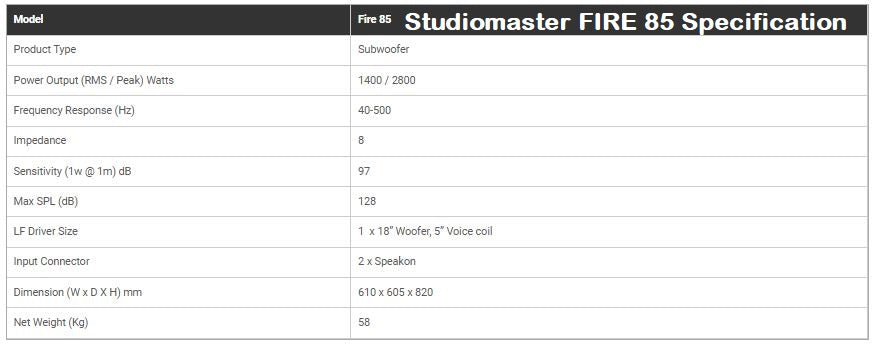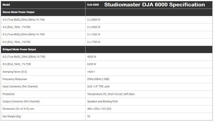 - Studiomaster DJA-6000 amplifier - 1 Quantity (for Sub-Woofer speaker of FIRE 85)