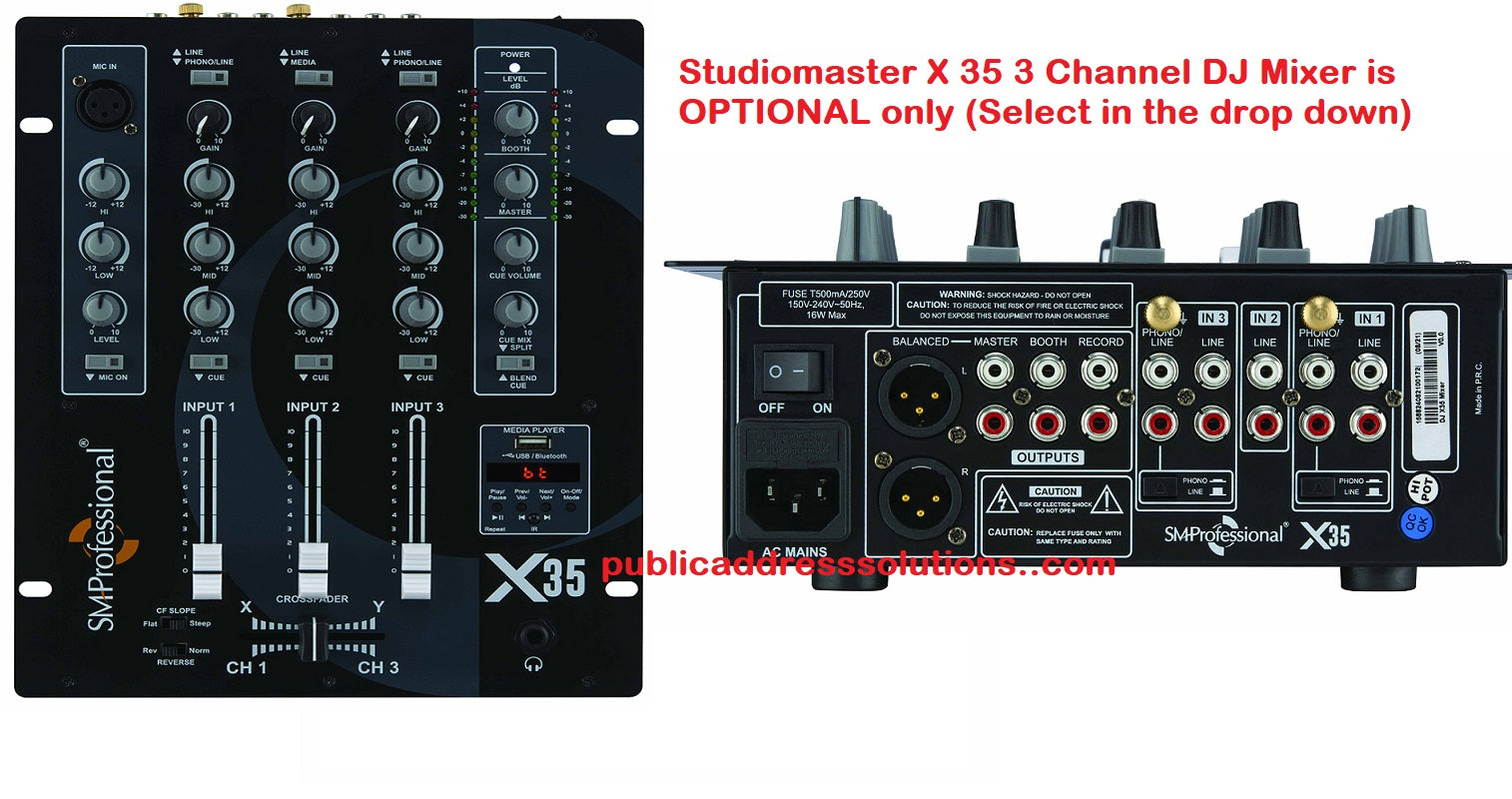 - Studiomaster X 35 (4 channel) DJ Mixer is optional only. If needed, select it from dropdown