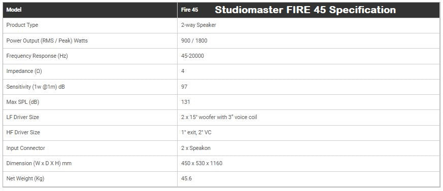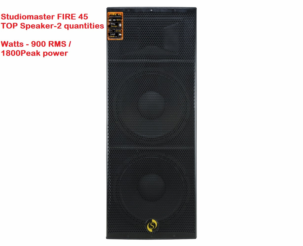 - Studiomaster FIRE 45 speaker (900 watts RMS *2 Quantities = 1800 watts)- 2Quantities of Top speakers