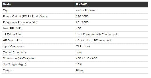 Studiomaster B 400 V2 Active Speaker (275watts)