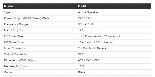 Studiomaster B 410 Active Speaker with Bluetooth&USB (275watts)