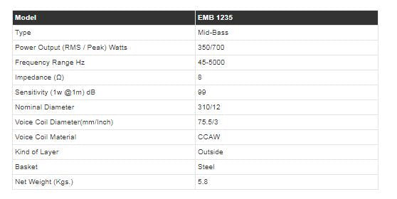 Studiomaster EMB 1235 12''Inch Speaker (350watts RMS)