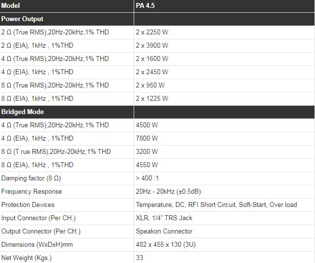 Studiomaster PA 4.5 Dual Channel Amplifier (2250+2250watts)