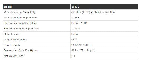- Send/Return ensures the SFX8 can be used as an external effect processor with a mixer.