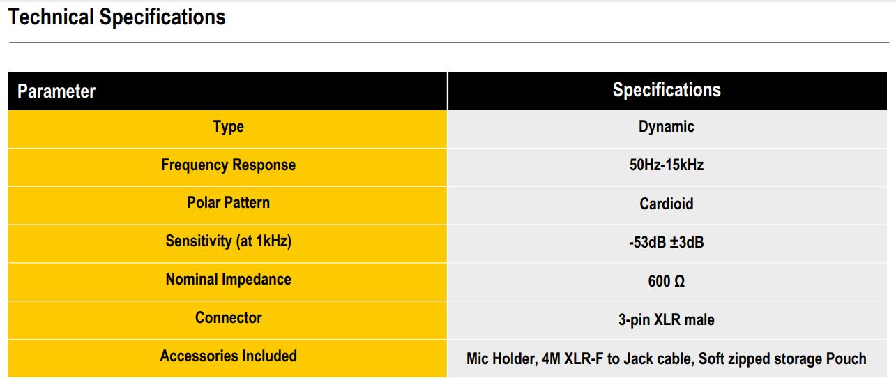 - Wide frequency response tailored to suit speech, vocal and instruments.