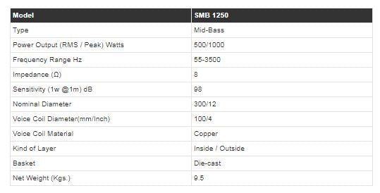 Studiomaster SMB 1250 12''Inch Speaker (500watts RMS)