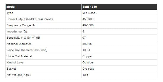 Studiomaster SMB 1545 15''Inch Speaker (450watts RMS)