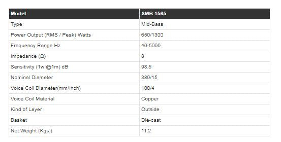 Studiomaster SMB 1565 15''Inch Speaker (650watts RMS)