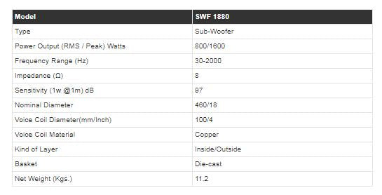 Studiomaster SWF 1880 Sub-woofer Speaker 18''Inch (800watts RMS)