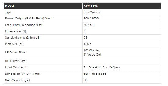Studiomaster XVP 1808 Sub-woofer(800watts)